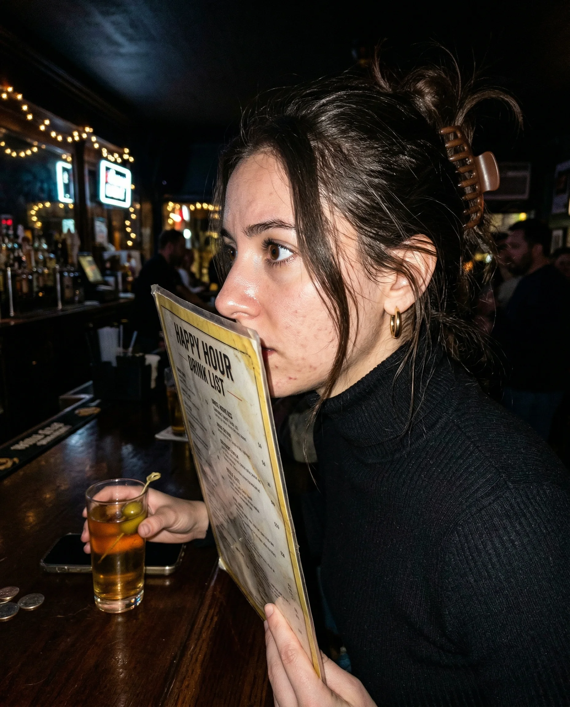 Small tables and bad overhead lighting do the heavy lifting here. I want the menu used as a shield and the napkin shredded into a pile of confetti between two people who haven’t decided if they like each other yet. Whether it is a diner booth or a cramped coffee shop, the frame needs to feel like a third wheel is hovering just out of sight. I want the flash to catch the condensation on the glass or the way a silver ring catches the overhead light while someone avoids eye contact. I trust the clutter of an empty water glass and a crumpled receipt more than I trust a perfect expression.